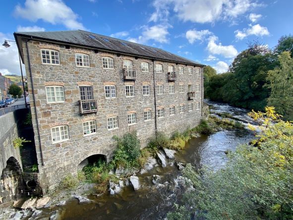 After replenishing our energy stocks we went for a little wander around the town – a little wander because it is only a little town, but like all old towns, it has an interesting history. A little bit of which came to light as we walked past the Trewythen Hotel. Here we saw a blue plaque showing that it had been central in the town’s Chartist Riot in 1839. Continuing our walk we came to the old town water mill – now converted to luxury apartments. The mill, powered by the fast flowing River Severn, was originally built as a corn mill, but later became a flannel mill, because there was much more profit to be made for the wealthy owners, from spinning wool into yarn to manufacture flannel cloth.