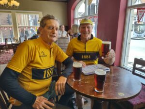 We locked our bikes together on the pavement outside the pub where we could see them from our table. While we were supping our pints of “Monkey Wrench” we noticed a suspicious character in cycling garb eyeing our bikes through the window. Keen to make this person aware that we had seen her, we waved and smiled in a friendly manner. This was reciprocated and we thought nothing more about it, until ……. We turned around and there was the lady standing beside us beaming at us. We exchanged a few pleasantries, and ……. Three hours later there she still was!