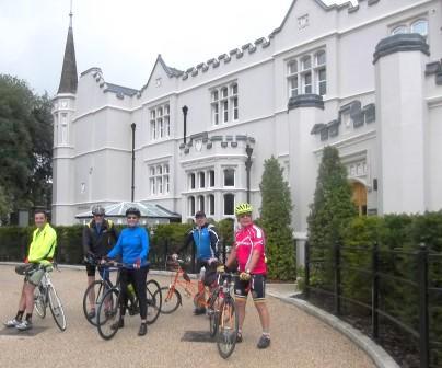 Not only a posh bike, but also a posh background. Due to a slight navigation error when going thru the private estate at Kingswood, we took a short cut to get back on track. The short cut entailed us speeding past a dozing security guard, all that is except Jenny, who as tail end Charlie didn’t quite make it! However with female charm and a big smile she sweet talked her way past the guard who was now out of his hut and baring the way. The property being guarded against unwelcome intruders was this beautiful bit of Victorian splendour.