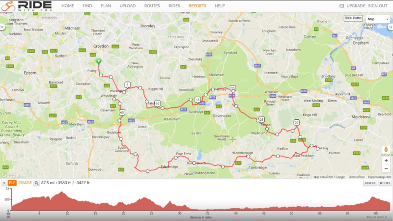 I was feeling the distance with 10 miles to go but was nice to see a white hart on the hill at Marden Park. I made the ride time of about 5 and a half hours and the distance very close to 80 miles. Ave speed 14 plus mph. We where so lucky not to get a puncture too on roads like that, just show’s how much better modern tyres are.
