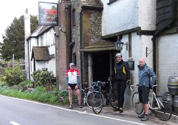 But we original four had done a fair few miles before this rendezvous. Leaving Coulsdon we climbed up Portnalls Rd to the high ridgeway at Chipstead, then took the turning off to Mugswell, or is it Monkswell? Well actually neither. Its original name was Magswell, named from the well of St Margaret. The well being a feature, the feature of the Well House Inn.