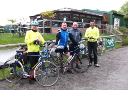 Being the school half term holiday our all male pack was brightened by the addition of Ewa, and Mark was back after an absence of a couple of weeks. The ride started off late because Philip had a puncture enroute to the start at Shurguard. Not an auspicious start on this dank day. Although it was not raining when we set off, the roads were very wet. Definitely a day for mudguards to keep most of the spray off bikes and riders. It is supposed to the first day of summer on Saturday, so what has happened to the sun!