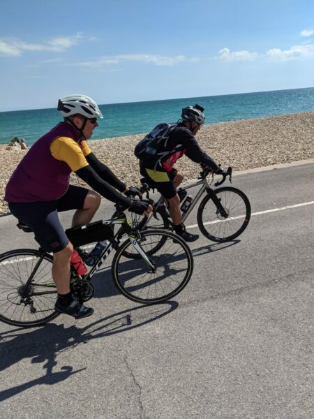 A sunny Wednesday left me with an urge to go to the coast and include some gravel. After the usual question of “Is a road bike alright?”, to which I replied along the usual lines, “Yes, depending on how you ride and how wide your tyres are”. I was joined by two of the Anerley worthies Brian Chapman and John Diamond who proved that gravel bikes are not essential on a route with limited offroading.