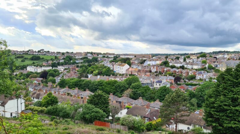 40 miles of relatively flat riding followed so at times we built up a good speed and rhythm. Very different terrain from our familiar Surrey hills. Marden, Staplehurst, Frittenden, Tenterden and Appledore flew by before we arrived at Rye. On a fine Saturday afternoon, the town was full of visitors but we managed to find a café with room for us – the Cornish Bakery – and so we topped up our caffeine and calories ready for the big one, Battery Hill.