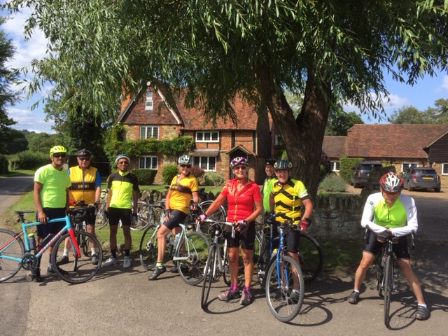 Taking a left fork at Chiddingstone Causeway, most of my group were into new territory, along some lovely country lanes leading eventually after some 25 miles, to our tea stop at Hilden Golf Academy. Here we met up with Fran’s group and the 9.30 group led by Tom Vaz.