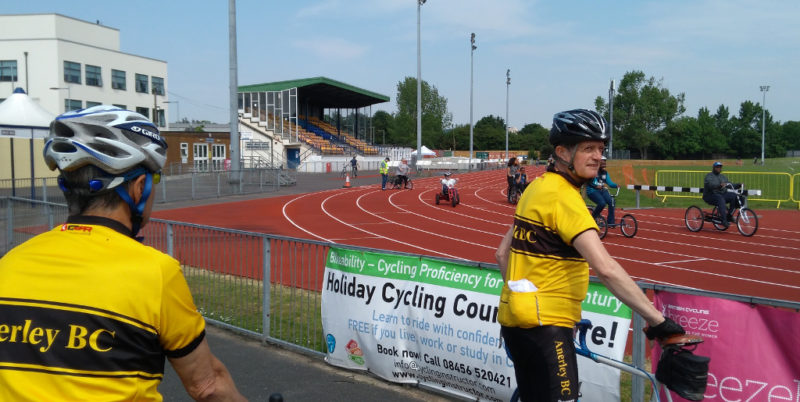 This also gave us the chance to see some real cycling around the arena by ‘Wheels for Wellbeing’ – the local charity dedicated to removing the barriers to cycling through physical or mental health issues. The charity that got our own John T back onto two wheels a few years back.