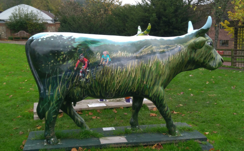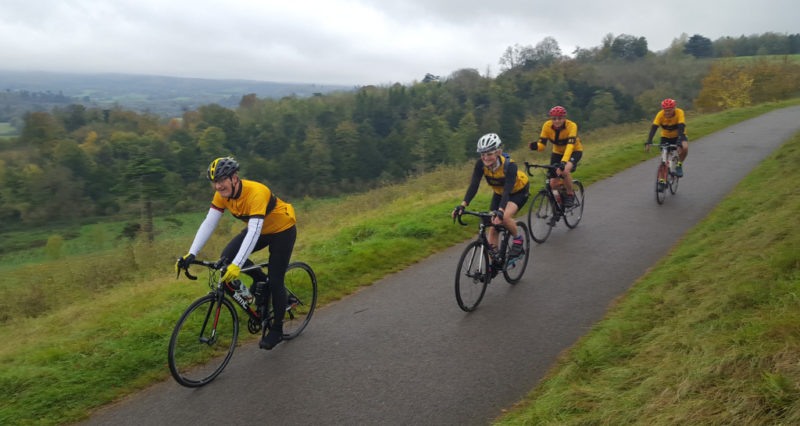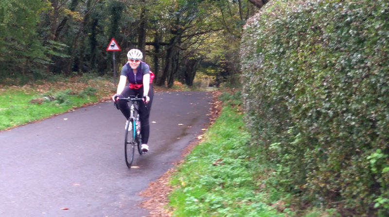 People are getting lazy. Only four riders for the fast ‘A’ ride seen here careeing down the path into Denbies. Plus Tom V, of course, who took the pic.