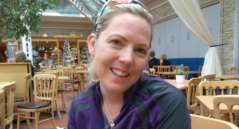 Here new Social Sec Viv reaches the top of Ranmore Common smiling (why?) …