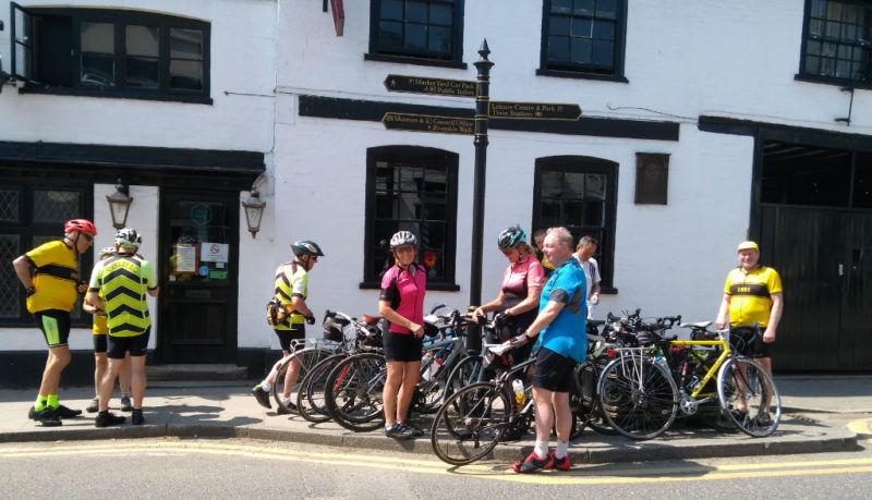 Above the Minstrel at Edenbridge – with just one bike outside (and the author inside). This was our Tuesday destination although the leader of the ‘A’ ride appeared to be heading elsewhere. At least the ‘B’ ride got here led very gently by Des as it was maybe getting hotter than the hotest May Bank Holiday ever the day before.