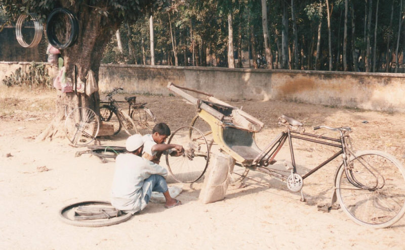 Stopping for a repair I was surrounded by a crowd of men and boys_about 30 strong. On completion of the repair I held out my cap and said “Two rupees, please!” They looked bewildered!