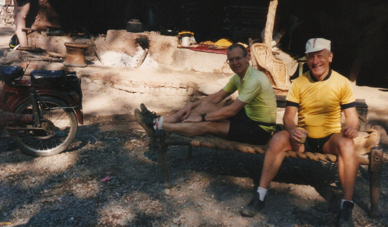 Further on John and I overtook two elephants with their mahouts. We stopped to take photos, at which the mahouts shouted angrily., the one nearer me gave his elephant a command and jumbo wheeled in the direction of my Pearson, leaning unsuspectingly against a tree. I leaped. to my bike, jumped aboard and skedaddled, just as jumbo’s trunk stretched for us! John also grabbed his bike as the second elephant loomed large over him, and we quickly distanced ourselves from the predatory pachyderms.