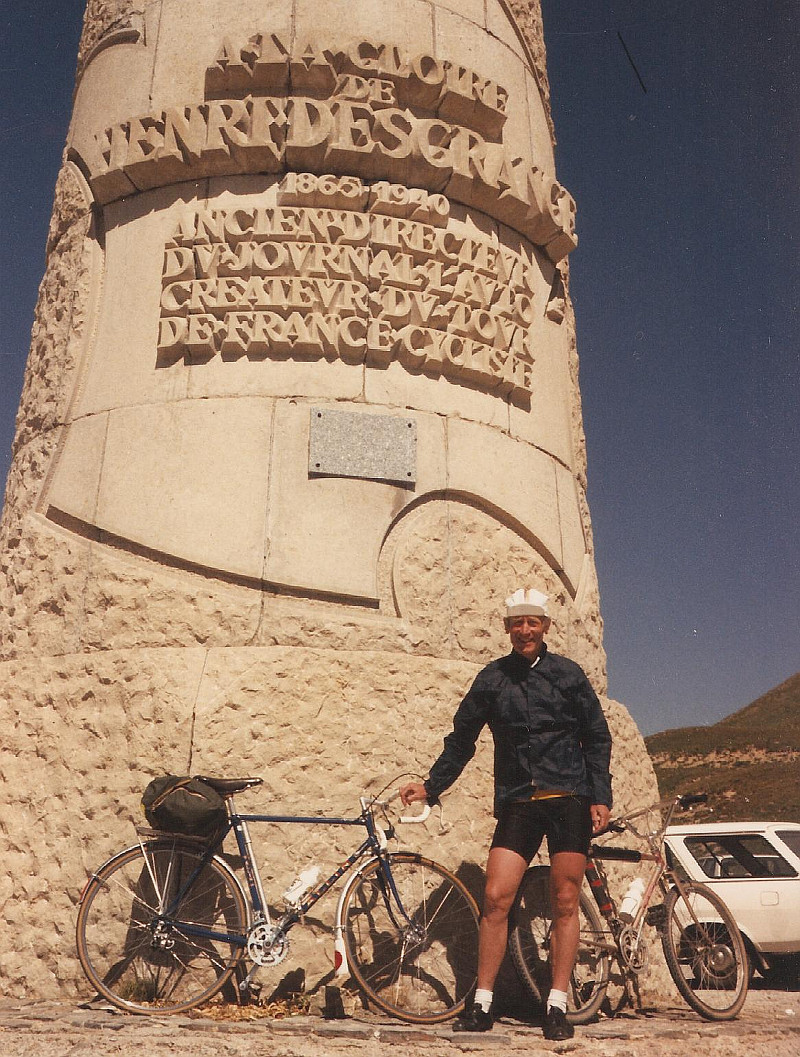 Stopping to check my map, I found myself about 10 kilometres from the summit. From experience I knew that the final 10 kilometres are the real killers, with gradients of one-in-six or so. Pacing myself carefully into a rising head-wind I was surprised to round a bend and see an elderly man, in long trousers, on a low-geared racing bike ahead of me. “Bonjour”, I called as I passed. “There is a wind”, he rejoined, in French. With that he stopped, dismounted, and started to walk up.